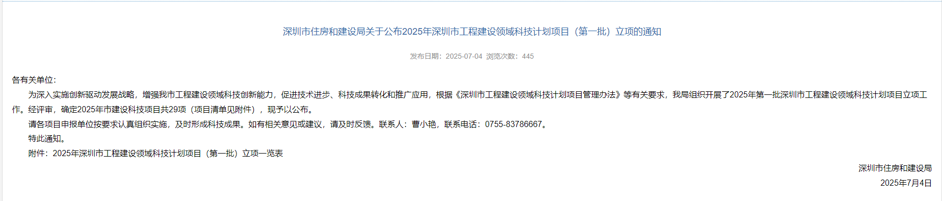 ?由公司牵头申报的科技项目《面向智能建造的高层建筑全生命周期数字智能健康监测技术研究与应用》,成功通过2025年深圳市工程建设领域科技计划项目(第一批)评审并获批立项。